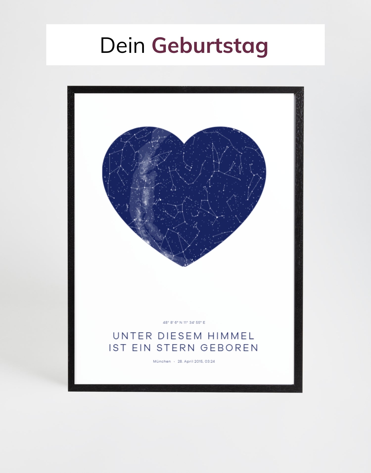 Ein individuelles Geschenk zum Geburtstag: Überrasche das Geburtstagskind mit einem personalisierten Poster, das den Geburtsort und das Geburtsdatum zeigt.