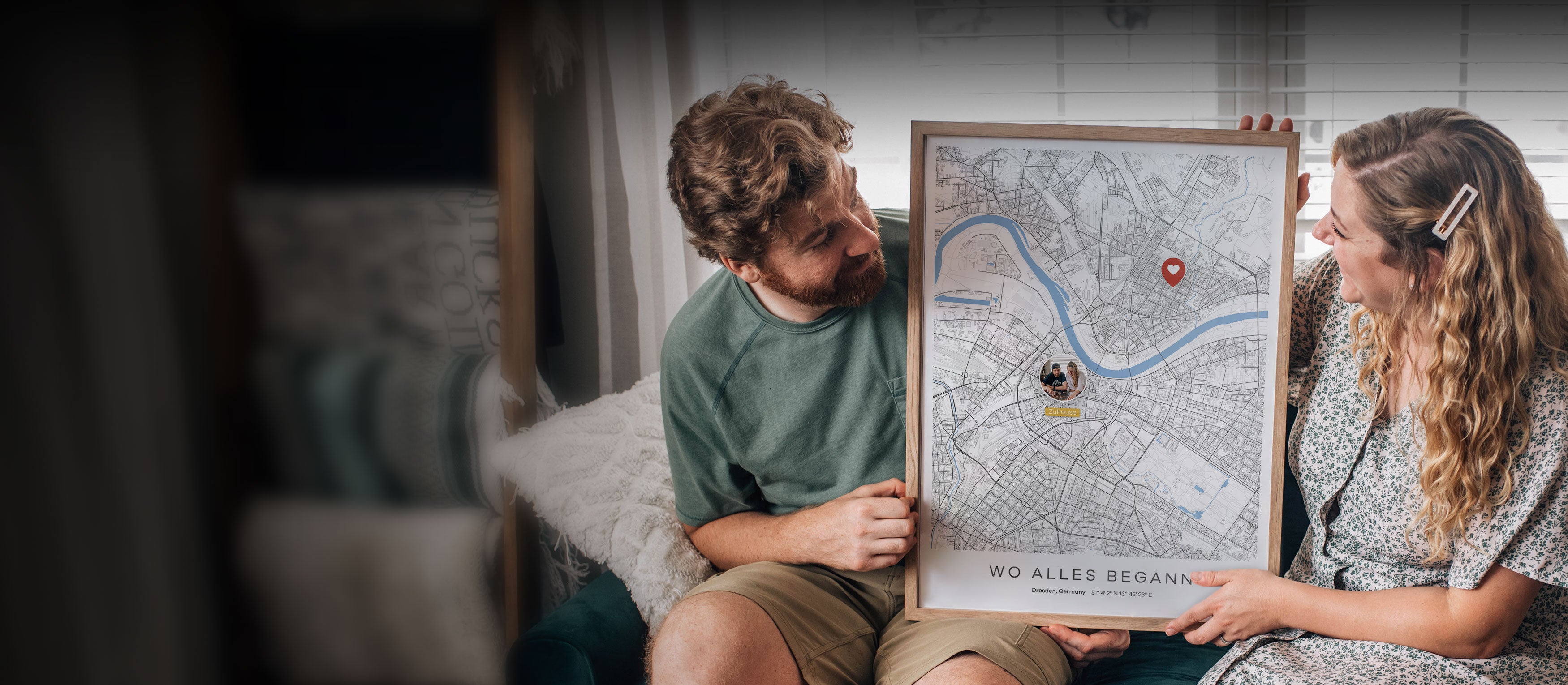 So kreierst du ein einzigartiges Geschenk, das gemeinsame Erinnerungen zum Leben erweckt. Schenke beispielsweise deiner Partnerin oder deinem Partner den Weg eurer Beziehung: Vom ersten Date über die erste gemeinsame Wohnung bis hin zur Verlobung kannst du alle eure Momente in der Stadt abbilden. Ein besonderes Geschenk zum Einzug, als Jahrestagsgeschenk für sie oder ihn oder als liebevolles Hochzeitsgeschenk.