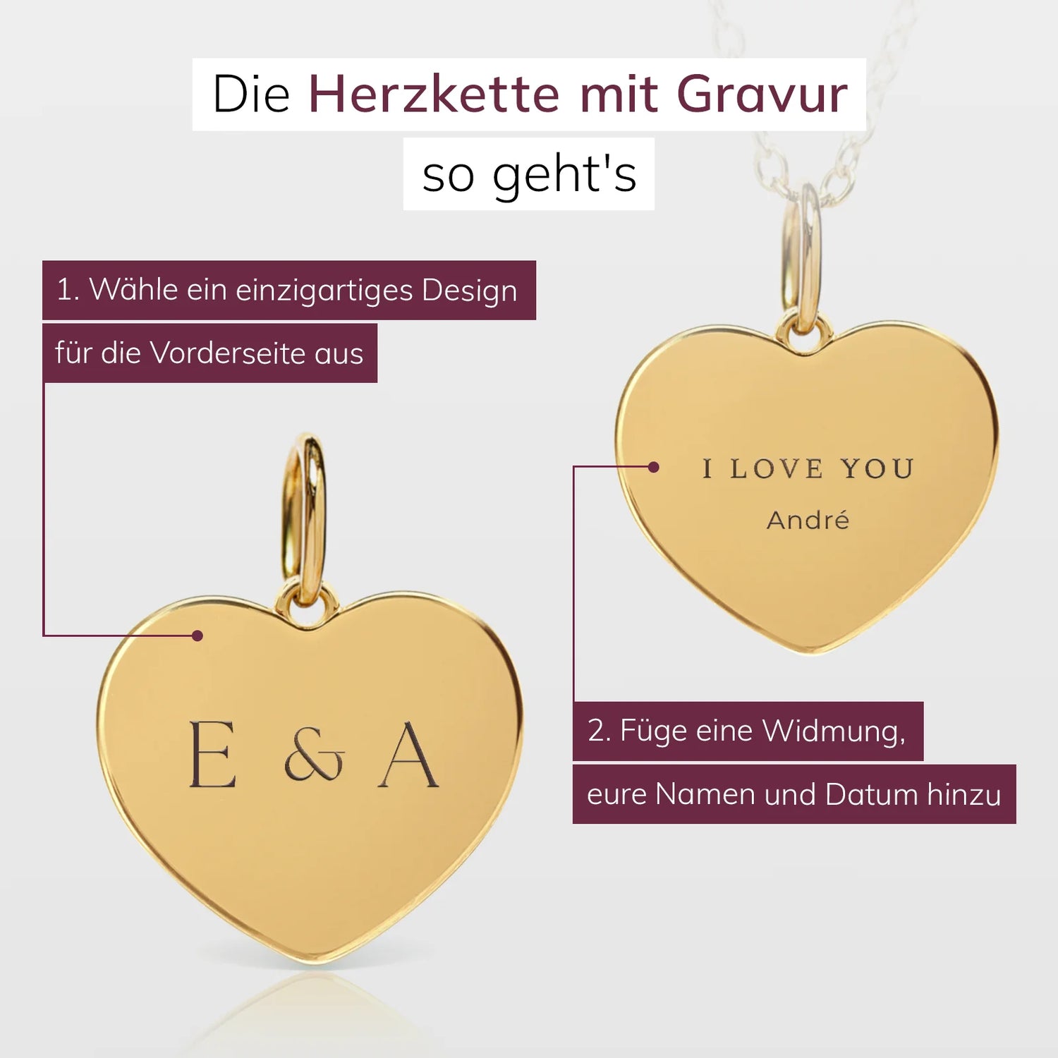 Deine Herzkette mit Gravur in Bildern